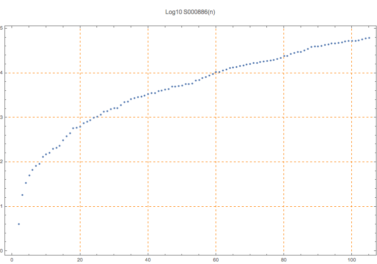 (Mma) lim = 50; nn = (lim + 1)^2; t = Table[0, {nn}]; Do[n = x^2 + y^2 + z^2 + w^2; If[n < nn, t[[n + 1]]++], {x, 0, lim}, {y, 0, x}, {z, 0, y}, {w, 0, z}]; mx = -1; tMax = {}; Do[If[k > mx, mx = k; AppendTo[tMax, k]], {k, t}]; Table[Position[t, b, 1, 1][[1, 1]] - 1, {b, tMax}]